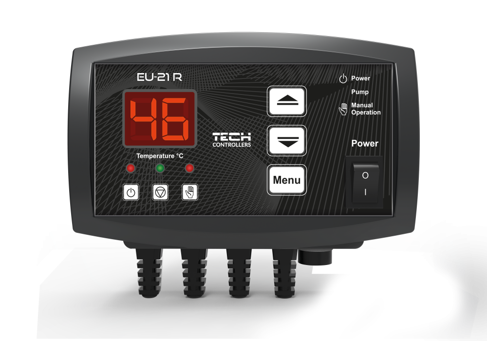 A LED kijelzővel ellátott EU-21 R szabályozó a központi fűtés vízkeringető szivattyújának vezérlésére szolgál. A szabályozó feladata a szivattyú bekapcsolása, ha a hőmérséklet eléri a beállított értéket, és kikapcsolása - ha a kazán a beállított hiszterézis értékével a beállított érték alá hűl. Ez az üzemmód megakadályozza a szivattyú szükségtelen működését, ami lehetővé teszi az elektromos megtakarítást, valamint meghosszabbítja a szivattyú élettartamát és növeli a megbízhatóságát. Az EU-21 R szabályozó termosztátként is funkcionálhat, amely a beállított hőmérséklet elérése után kikapcsolja a szivattyút. A vezérlő ANTI-STOP funkcióval is rendelkezik, amely megakadályozza, hogy a keringtető szivattyú szezonon kívül letapadjon (a szivattyú 10 naponta 1 percre bekapcsol). További védelem a fagyálló funkció, amely megakadályozza a rendszerben lévő víz megfagyását, amikor a hőmérséklet 5 ° C alá csökken, a szivattyút folyamatosan bekapcsolva tartja. Továbbá rendelkezik NO/COM/NC relével egy hőtermelő kapcsolásához.