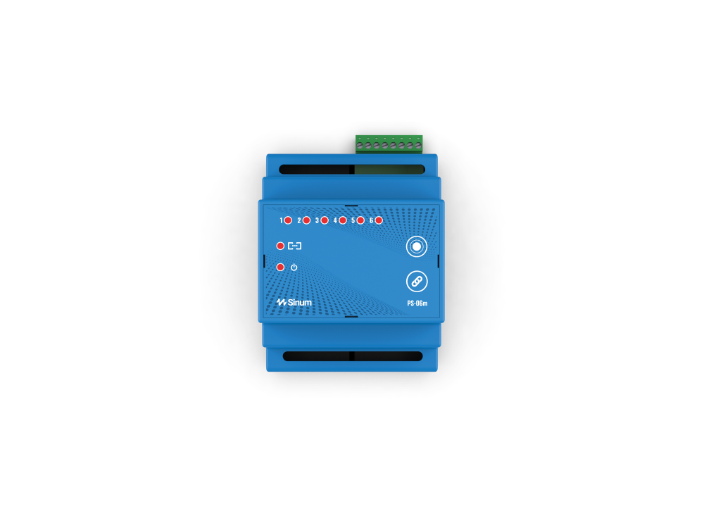 A PS-06m egy olyan eszköz, amely mindazoknak készült, akik szeretnek mindent egy helyen elhelyezni - pl. A PS-06m 6 relével rendelkezik - feszültségmentes kimenettel, és egy TH35 buszra van felszerelve az áramkörök és eszközök közvetlenül a biztosítékkimenet mögé történő csatlakoztatásával. Legfeljebb 6 eszköz csatlakoztatása lehetséges.