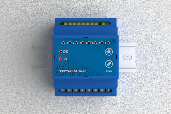 A PS-08 egy olyan eszköz, amely azok számára készült, akik szeretik, ha minden egy helyen, például az elosztószekrényben van rendszerezve. A PS-08 nyolc feszültségmentes kimenettel rendelkező relét tartalmaz, és TH35 sínre szerelhető, ahol közvetlenül a biztosíték után csatlakoztathatjuk a vezérlendő áramköröket vagy eszközöket. Lehetőség van akár 8 eszköz csatlakoztatására.