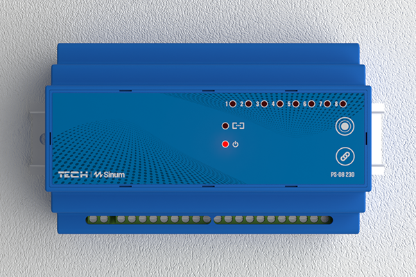 A PS-08 230 egy olyan eszköz, amely padlófűtési rendszerek vezérlésére szolgál, és ol.: nyolc kimenet képes 50db termoelektromos aktuátort kezelni. Ezenkívül más, 230 V-os eszközök bekapcsolására is alkalmas. A PS-08 230 nyolc feszültségkimenettel rendelkező relét tartalmaz, és TH35 sínre szerelhető, amelyhez aktuátorokat vagy szivattyúkat vagy egyéb eszközöket csatlakoztathatunk. Az EH-01 központtal kombinálva intelligens otthoni fűtési és hűtési rendszert hozhatunk létre.