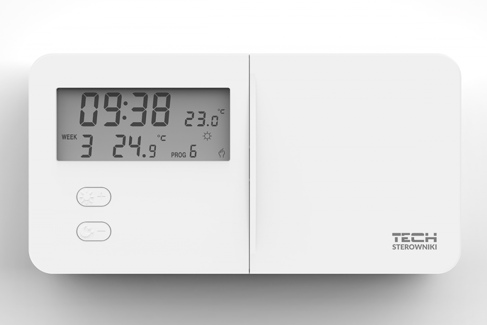 A termosztát 9 előre beállított heti programot kínál, kezelhető fűtés vagy hűtés módokban, és rendelkezik kézi üzemmóddal is. A beállításokat mechanikus gombokkal lehet végezni, a kijelző pillanatnyi háttérvilágítással rendelkezik a jobb láthatóság érdekében.
